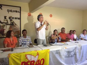 Durante o discurso, Ricardo oficializou a pré-candidatura da nova companheira do partido a uma das vagas na Assembleia Legislativa no próximo ano.