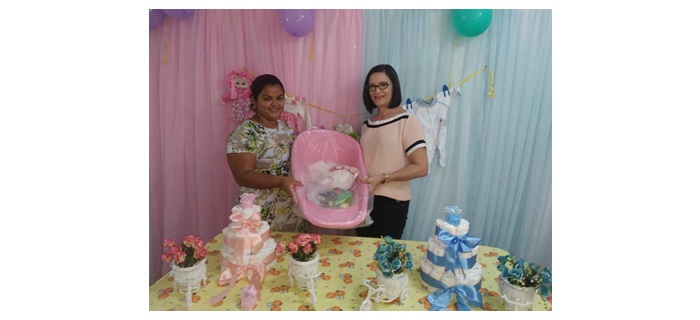 A Secretária e a equipe do CRAS, realizaram uma espécie de Chá de Bebê para comemorar mais uma futura vinda de uma linda criança que já nasce atendida em seu enxoval.