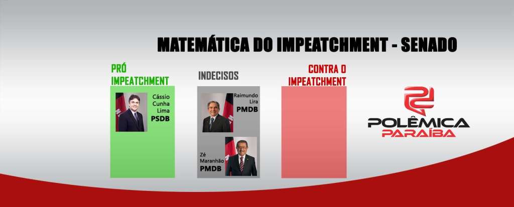 Os senadores paraibanos responderam à pesquisa e se posicionaram em relação ao processo. Cássio Cunha Lima (PSDB) declarou que é favorável ao impedimento, Raimundo Lira (PMDB) se posicionou como indeciso. O destaque ficou com o posicionamento do senador José Maranhão, que também se declarou como indeciso. O presidente estadual do PMDB falou em várias ocasiões que o partido deveria seguir a diretriz nacional de votar favoravelmente ao afastamento da presidente do poder.